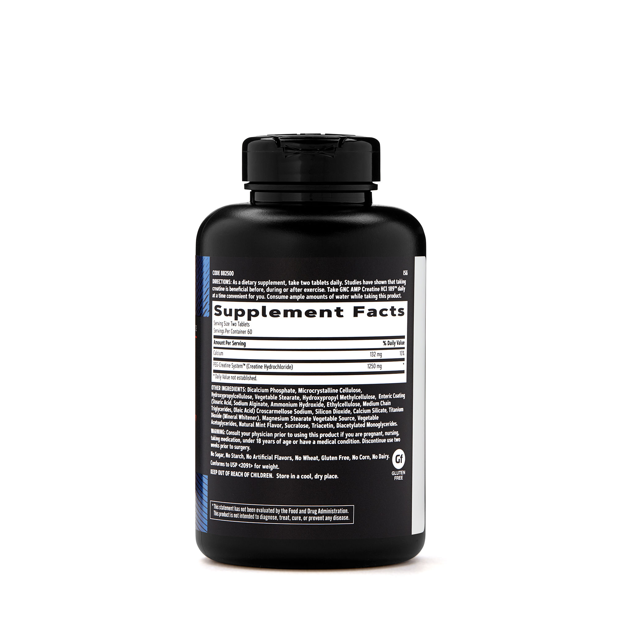 In a randomized, double-blind clinical study of 57 healthy, young adult males, subjects who took GNC AMP Creatine HCl 189™ containing only 1.25 grams of the PEG-Creatine Systems™ significantly improved leg press 1-RM performance by 54.3 lbs, while subjects receiving 5 grams of creatine monohydrate significant improvement at 5.7 lbs at the end of the study.